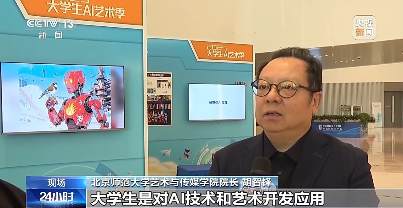 北京师范大学艺术与传媒学院院长 胡智锋:大学生是对AI技术和艺术开发应用最丰富、最多元也最活跃的一个群体。聚焦大学生,那么实际上就是聚焦这个时代的技术和艺术。通过这样一个活动,我们也想把产业、教育、经济、社会发展以及艺术发展综合的各个方面串联起来,能够使它产生综合性的化学效应。